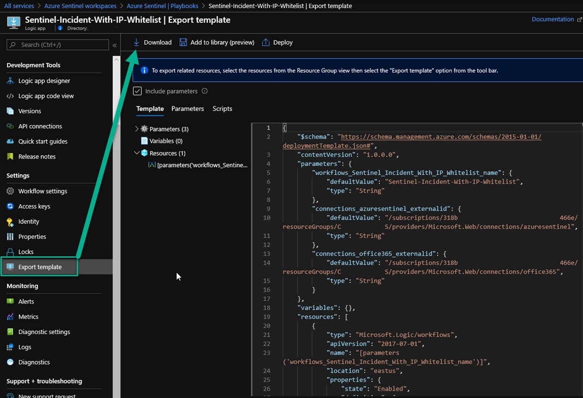 Exporting Azure Sentinel Logic App Playbooks as Azure resource templates