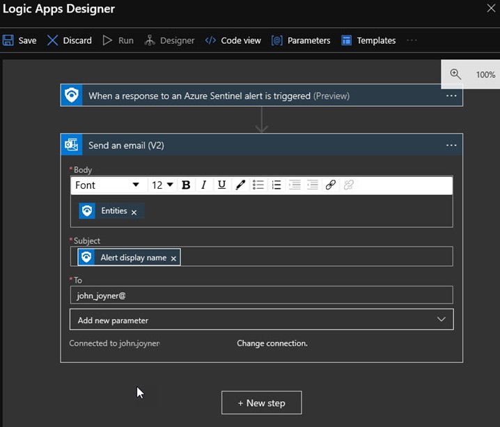 Figure 9 – A basic Azure Sentinel playbook is a Logic App that sends emails for every Sentinel alert.