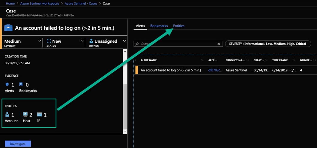 Figure 5 – Azure Sentinel cases include Entities that facilitate investigation