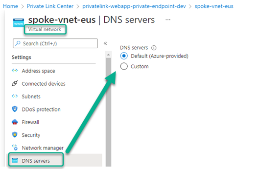 Figure 4 – Specifying the default Azure-provided DNS servers for a subnet automatically includes private DNS zones.