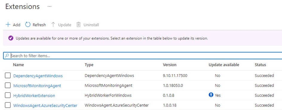 Figure 3 – Typical VM Extensions installed on an Azure Arc server before migration to Azure.