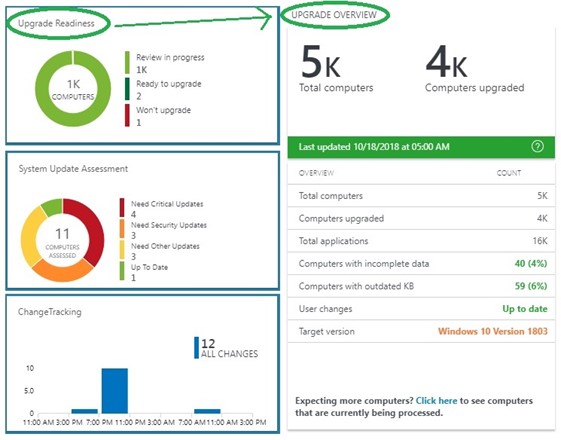 The Upgrade Overview blade as seen in the right side of Figure (1) summarizes how close you are to being ready to upgrade all your client computers to Windows 10.