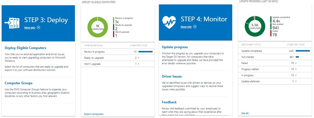 Figure 3 – Step 3 slots computers in groups when they are ready to upgrade, Step 4 tracks the progress of your overall upgrade project.