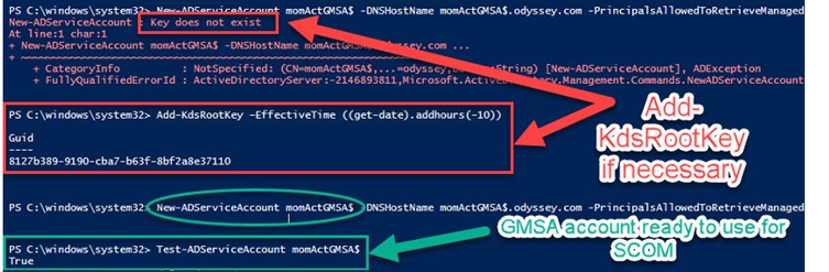 WARNING: Test failed for Managed Service Account svc.scomActGMSA$. If standalone Managed Service Account, the account