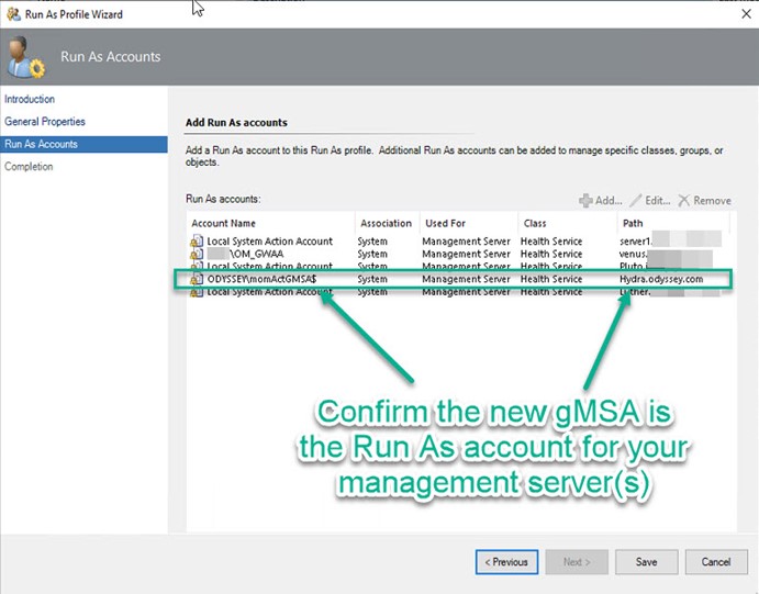 Figure 7 – After changing the Action Account, verify the Run As account is properly assigned to the new gMSA account.