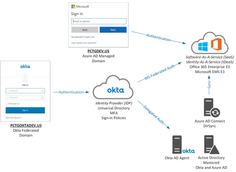 SSO systems have been compared to ID cards or passports, which are issued by trusted government authorities, and accepted as proof of identity by doorkeepers most everywhere. Figure 1 (courtesy Brian Cheatham) illustrates how you can use either Azure AD (top) or Okta (left) as an SSO provider to Software as a Service (SaaS) app Microsoft Office 365 (upper right).