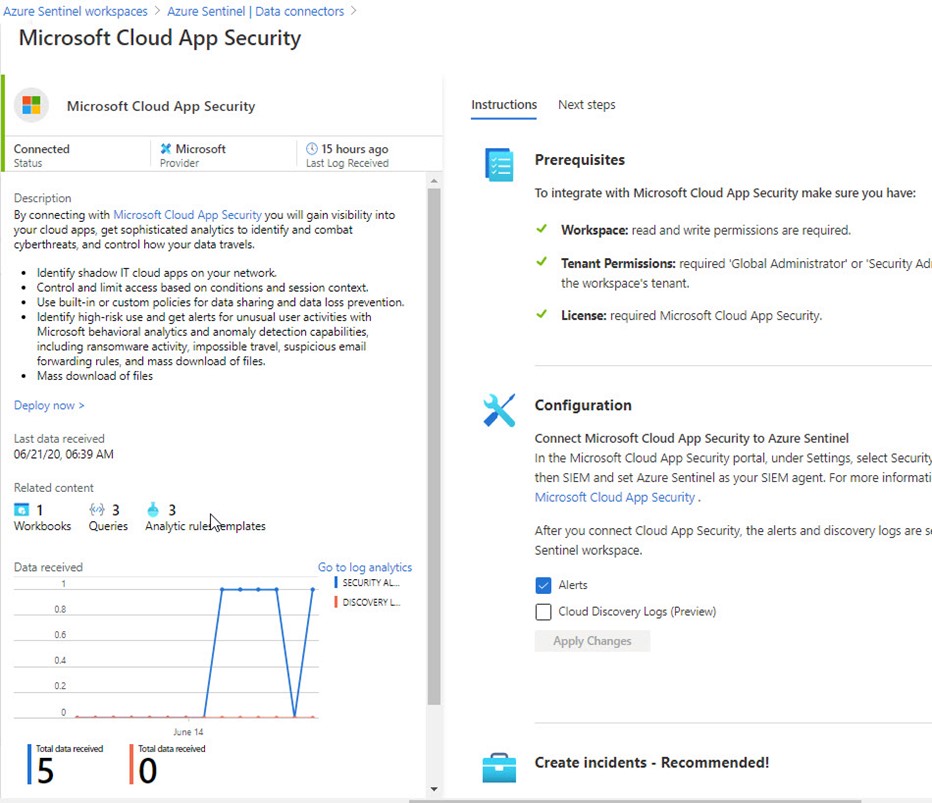 - Azure Sentinel incidents are raised in real time by MCAS with no additional data ingest charges.