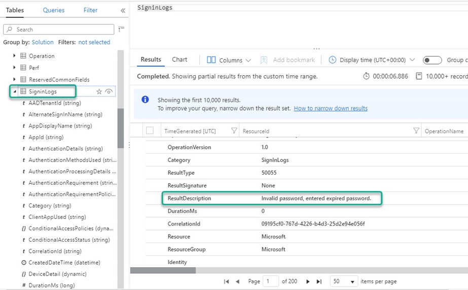 The key to getting this connector going is to log into the Azure Portal and configure the connector with a user credential that is also a Global Administrator or Security Administrator in the Azure AD tenant associated with the Azure subscription where the Azure Sentinel workspace is located. Activating this data connector enables 4 x Azure Sentinel workbooks and 22 x Azure Sentinel Analytics rules templates. Figure 4 is representative of the data you will start processing, in this example, a report of an Azure AD user that failed login due to use of an expired password.