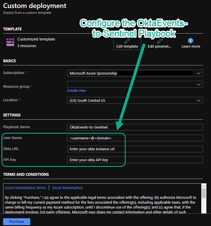 Figure 5 – Configure the OktaEvents-to-Sentinel Playbook with your Okta cloud service information.