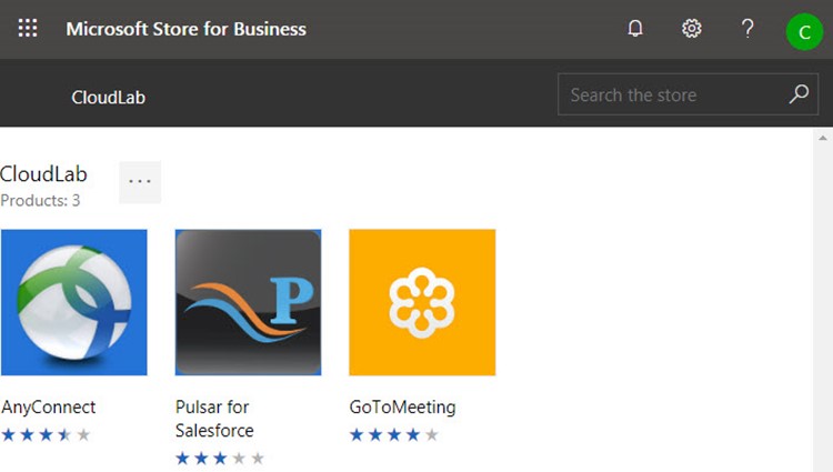 The private store is a feature in Microsoft Store for Business and Education that organizations receive during the signup process. Your private store is available as a tab in Microsoft Store portal (“CloudLab” in Figure 3), and is usually named for your company or organization. Only apps in your inventory with online licenses can be added to the private store.